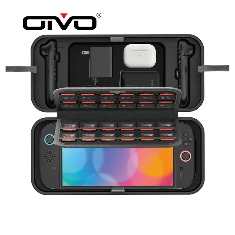 Dedicated Groove Design - Switch travel case has precise cut slots specially designed for storing left & right joy-con and adapter, more practical than common products on the market in similar size. Separate design avoids the metal pin of adapter to scratch joy-con. OIVO case for nintendo switch resolves the trouble that it is difficult to store large adapter in common size bag. With inner soft foam, switch light case provides better shock and press resistant to protect your love switch.